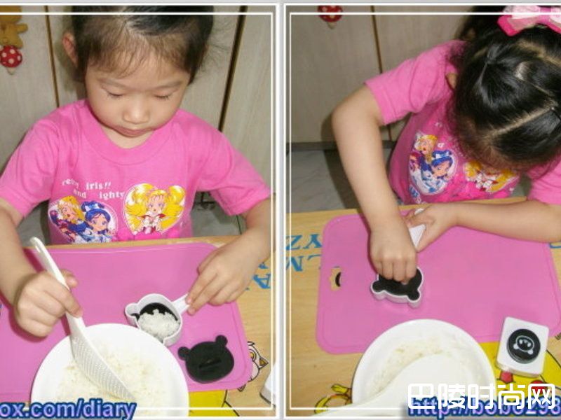 8接着使用圆仔饭团模具做出圆仔造型饭团