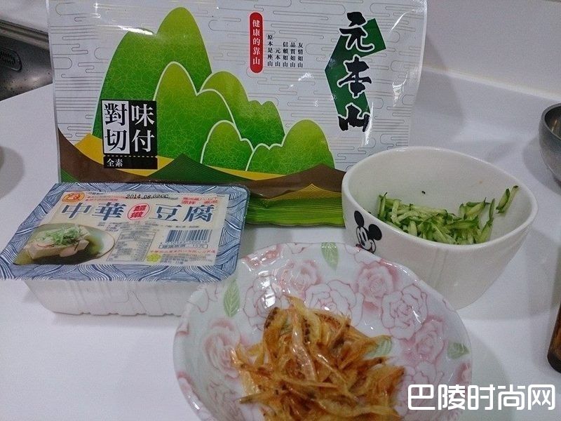 1配料樱花虾洗净沥干水分,平底锅中小火干煸至香气四溢,虾儿在锅中弹跳即可盛起