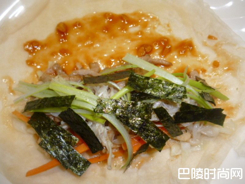 6放入香菜或葱丝,海苔,洒上花生粉