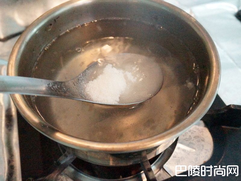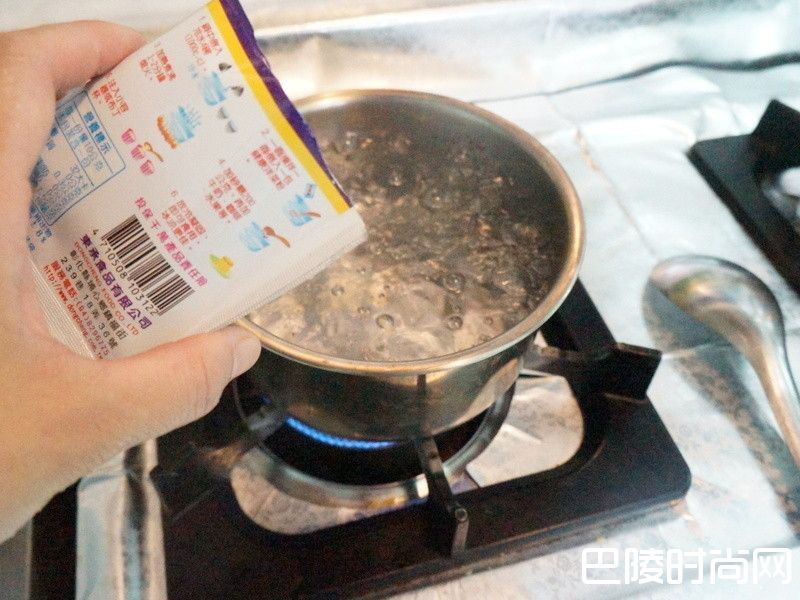 3洋菜粉加水煮滚。