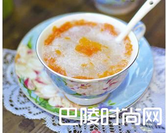 椰奶木瓜炖雪蛤原料:雪蛤膏10克,木瓜半个,冰糖2块,椰奶80毫升