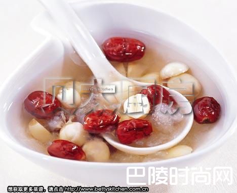 片糖炖雪蛤(此用量可供2-3人食用),莲子20g(约15粒),干红枣8粒,雪蛤10g,片糖20g,水250ml