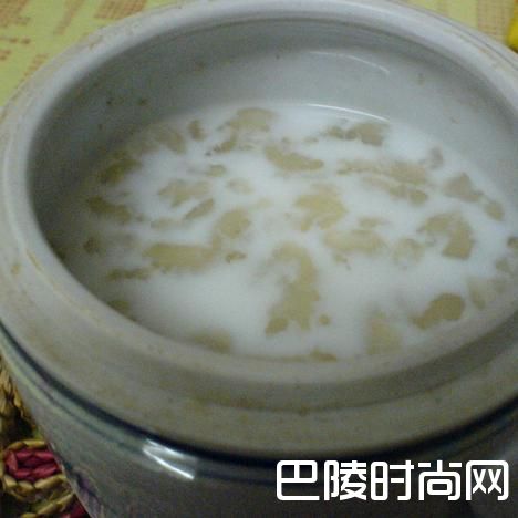 椰汁炖雪蛤雪蛤膏,冰糖各适量,椰汁,姜汁少量