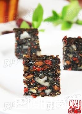 补血阿胶固元糕红枣500克,黑芝麻500克,核桃仁500克,阿胶500克,冰糖250克,黄酒500毫升