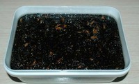 5.准备一个饭盒,四壁刷上色拉油,把熬好的阿胶倒入饭盒,等完全凉透后放冰箱过一夜,取出倒扑出来,切成片状,放冰箱冷藏.每天吃个两到三片就够了,千万不要多吃,会上火的