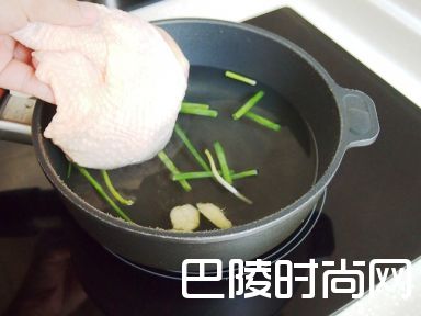 3在小锅中加入适量水,姜以及葱