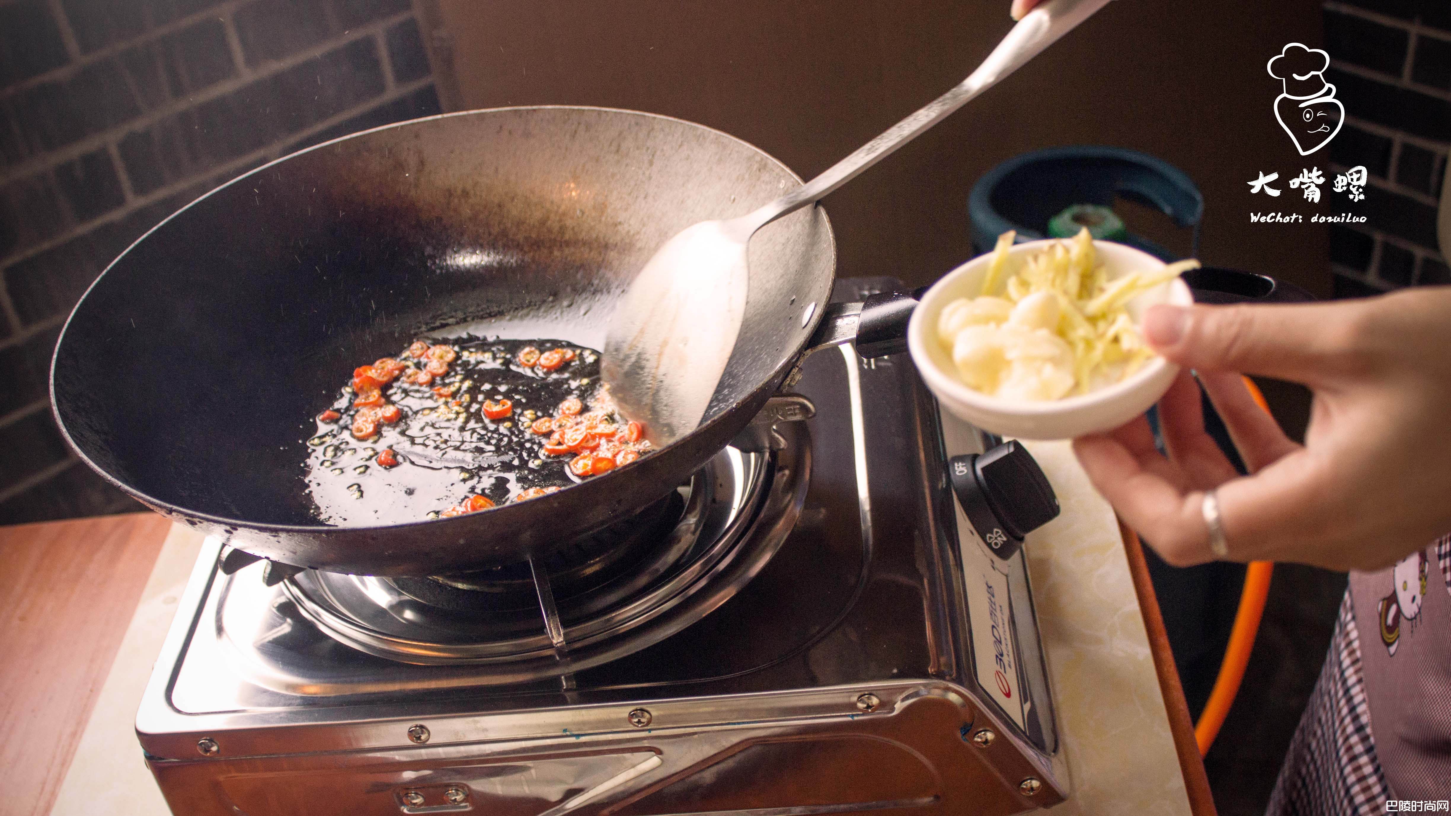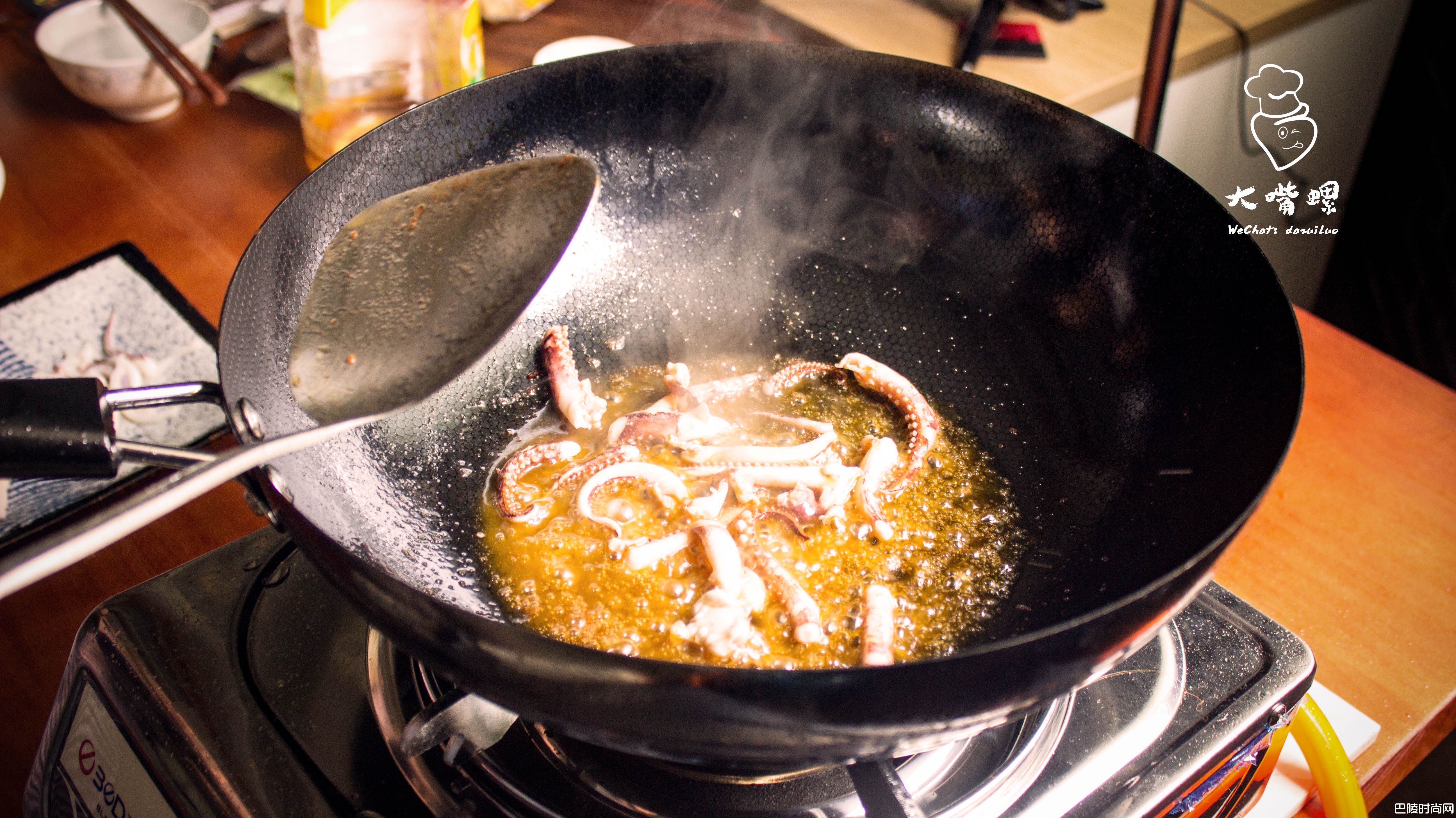 9处理鱿鱼后剩下的鱿鱼须可放入之前油锅翻炒。