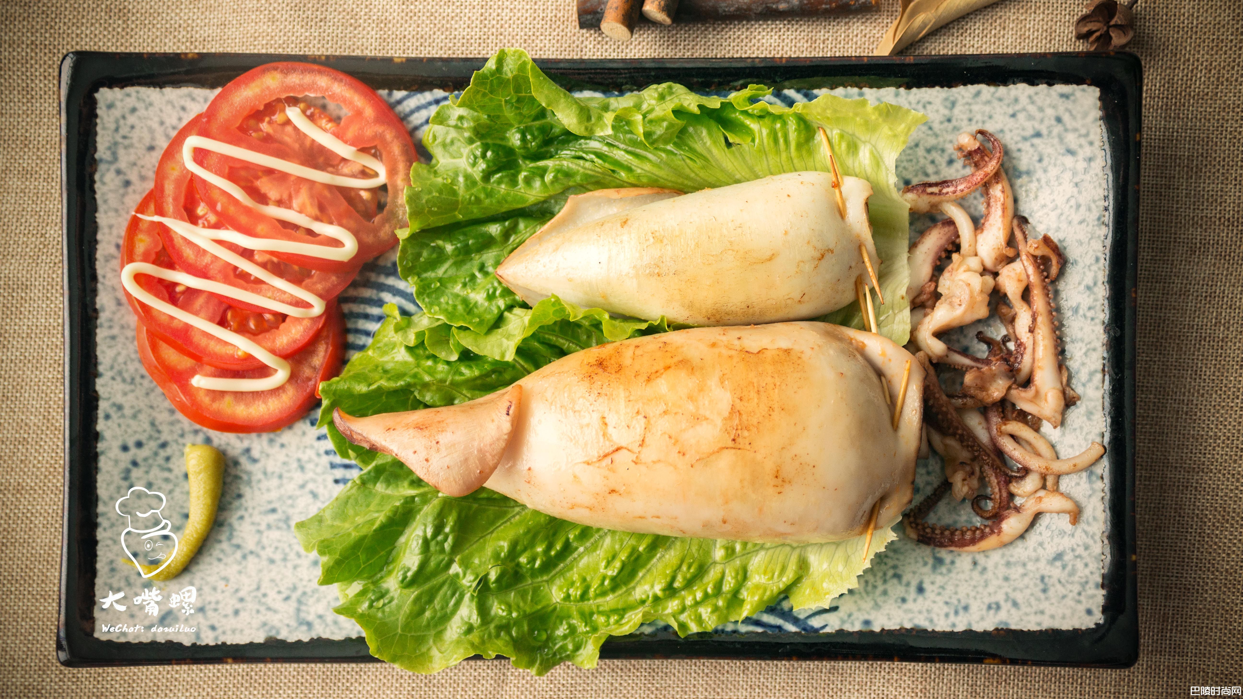 10将煎过的鱿鱼包粉放入碟中,鱿鱼须炒好摆盘