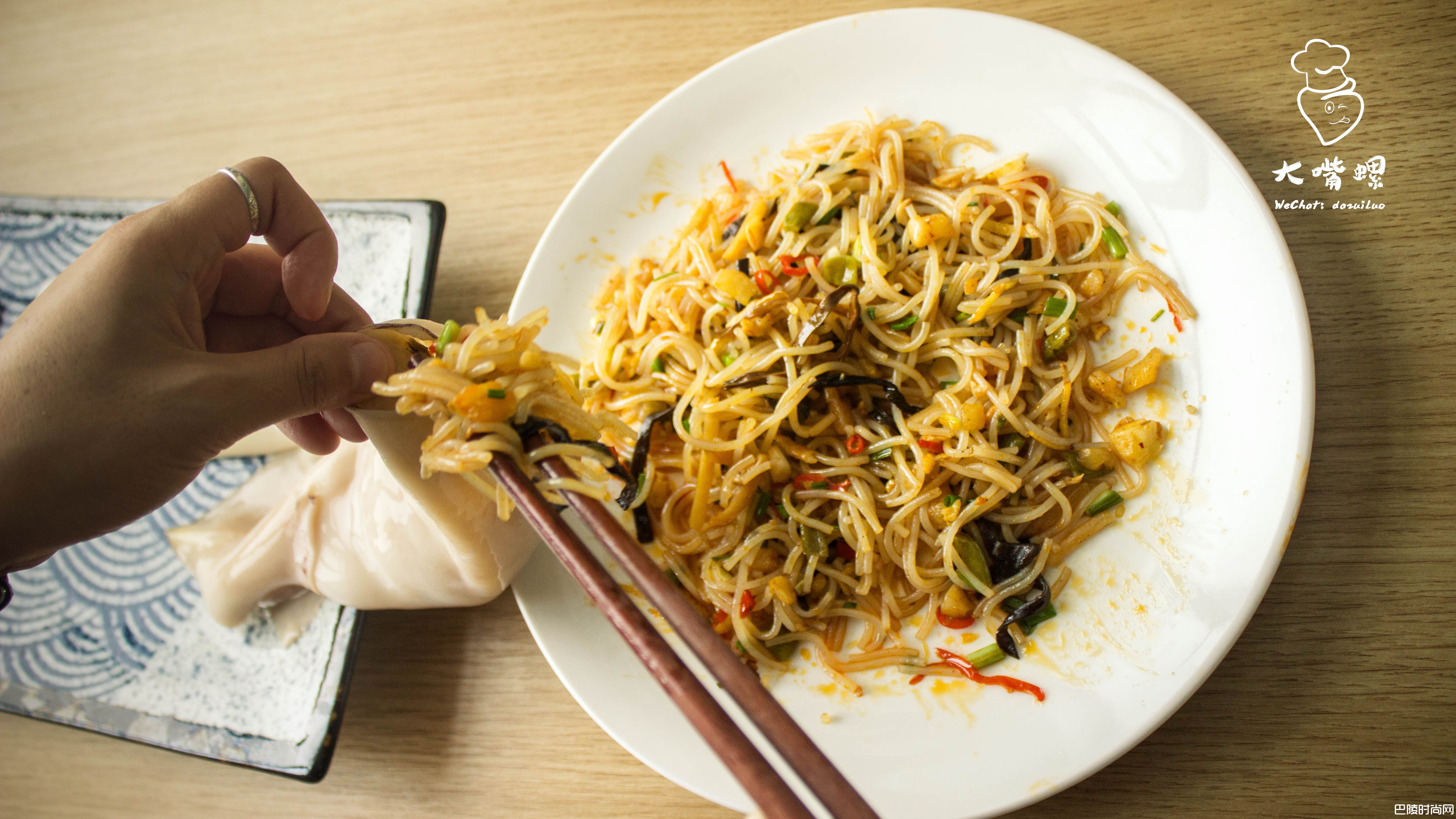 4炒锅内加入适量油,油热后加红辣椒,之后立即放入姜蒜及螺蛳粉内调料包配料翻炒。炒出香味后倒入煮好的米粉,不一会可出锅。PS:即使没有填充鱿鱼那一步骤,单吃爆炒螺蛳粉味道也是杠杠的呢~