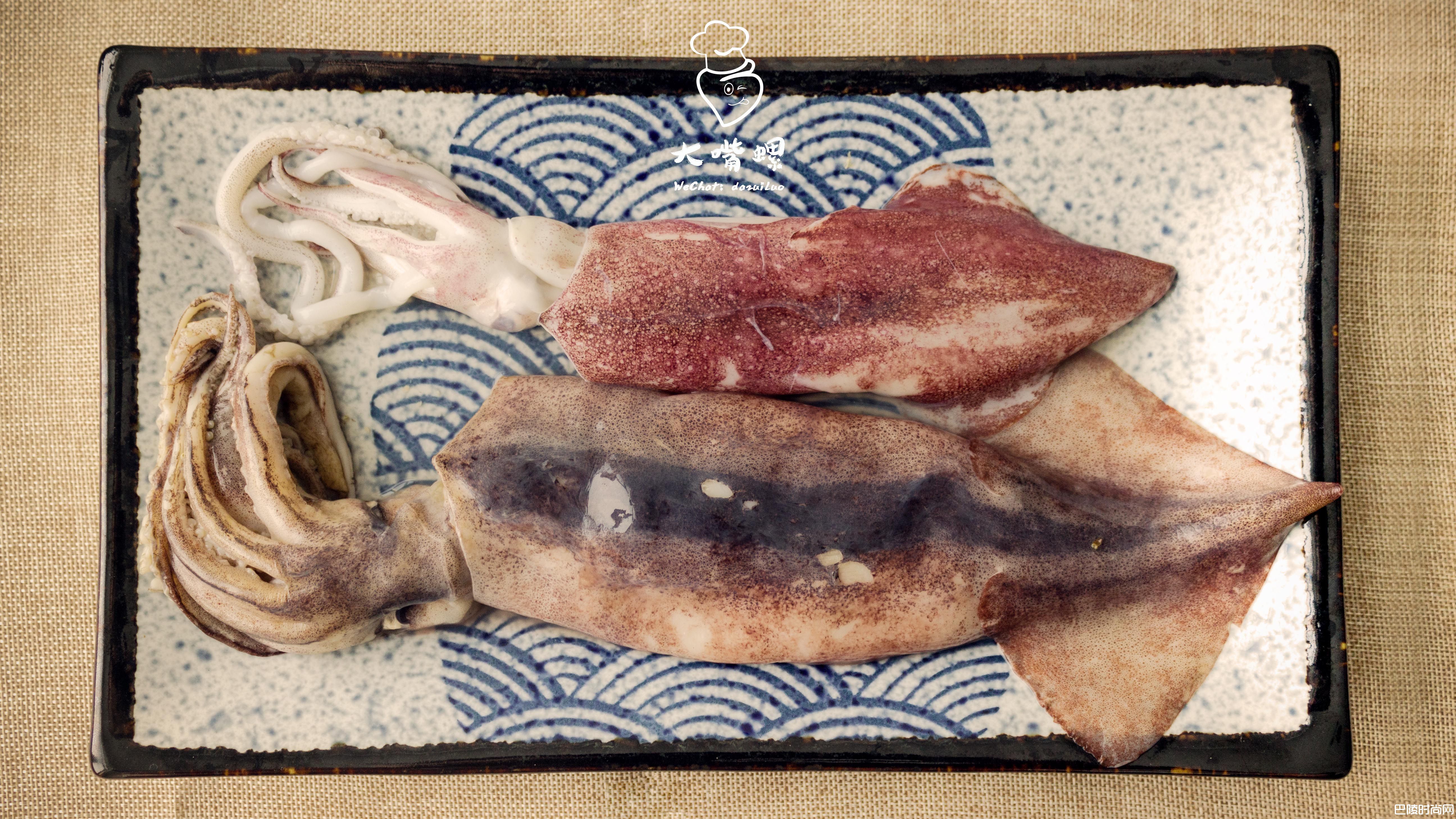 2将鱿鱼处理干净,将内脏掏空,取出鱿鱼须备用,最后撕掉鱿鱼膜