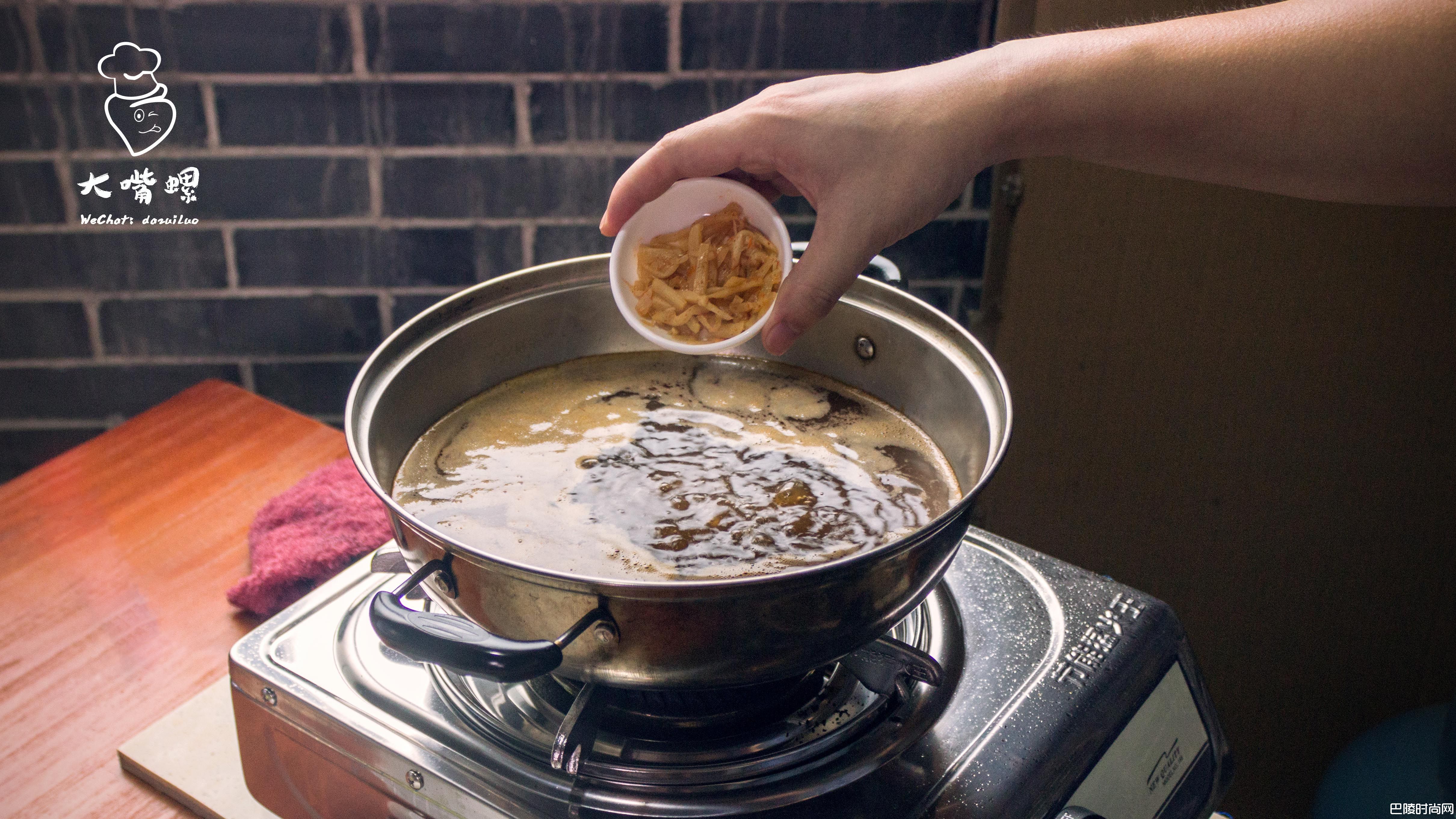 5开火烧适量水,水开后逐一将红辣椒、卤水、红油、酸醋、酸豆角、木耳、酸笋倒入锅内(味道很浓郁,为保有纯正的螺蛳汤的味道,不需要放入其他香料调味