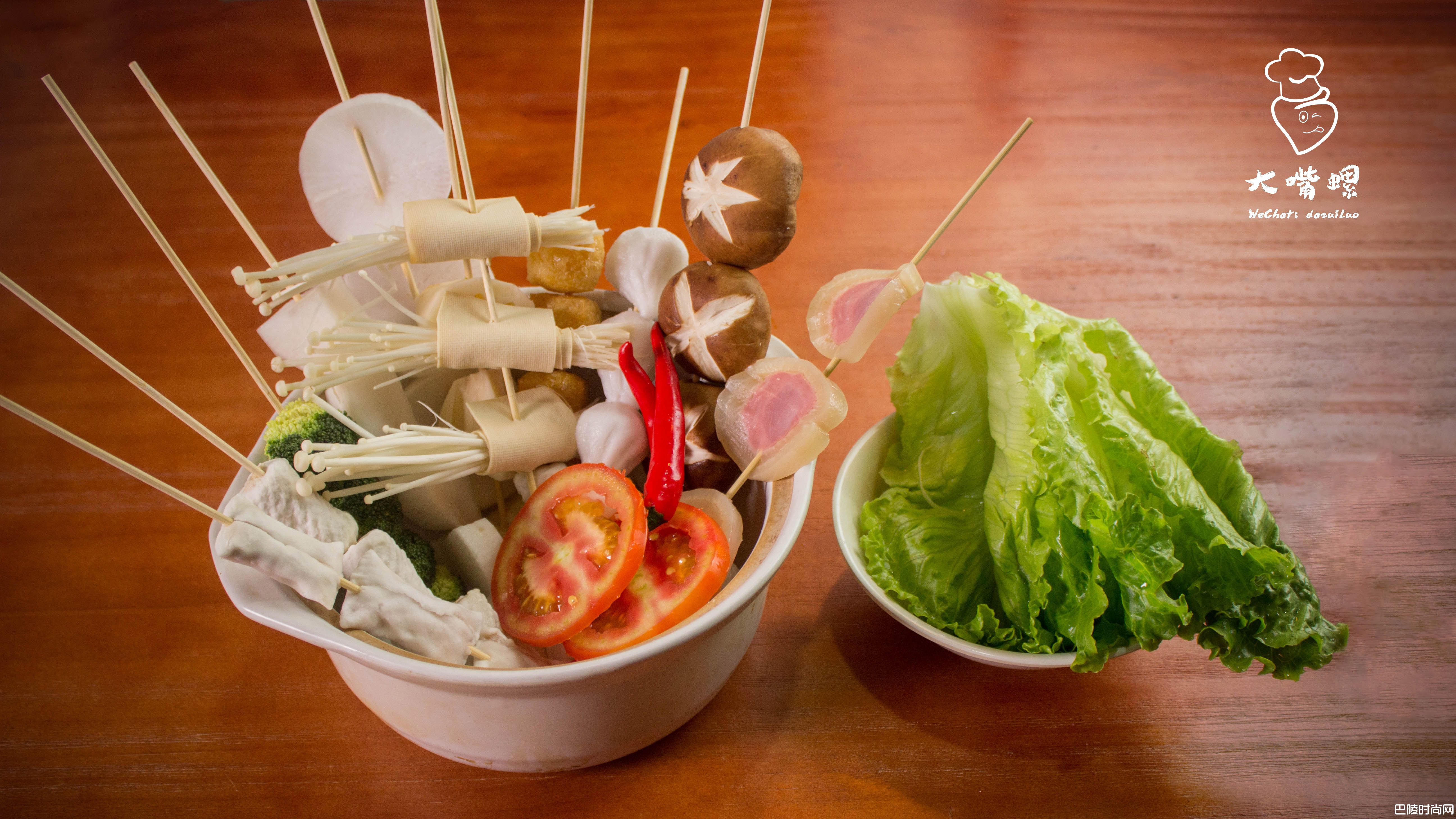 3接下来就把各种食材串上竹签(可按个人需求来购买食材,大嘴偏爱鱼丸和豆腐泡!