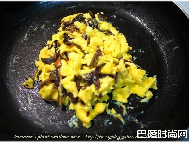 7最后可在麻辣黑菇酱炒蛋上,洒上些许葱花来增色。
