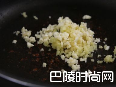 5用中火烧热锅,加少许油,炒香蒜蓉及姜蓉