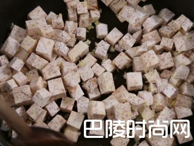6加入芋头粒煎至金黄色