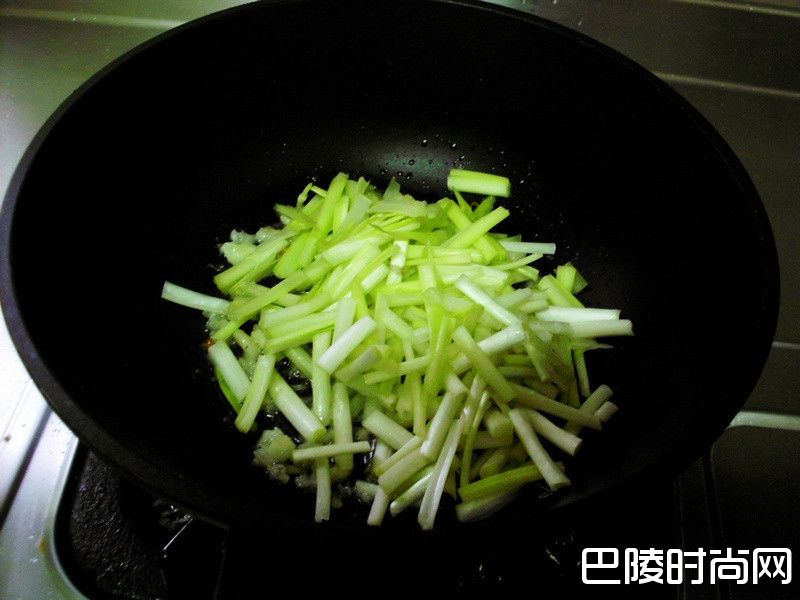 2先爆香蒜末后下韭黄炒约1分加入鲜蚵,起大火....
