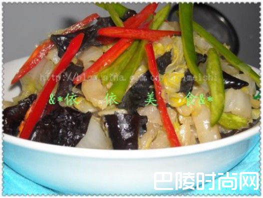 素炒黑木耳大白菜大白菜,黑木耳5朵,青红辣椒少量,盐,鸡精