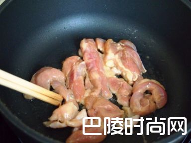 2加入鸡肉炒至半熟