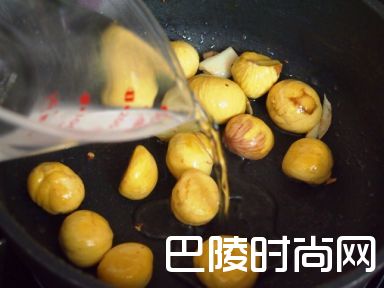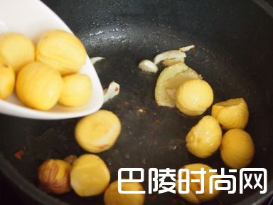 3加入栗子炒至金黄色