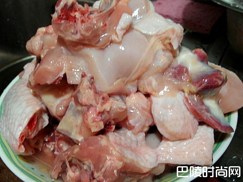 2鸡肉块也先洗净汆烫血水→冷水冲洗干净