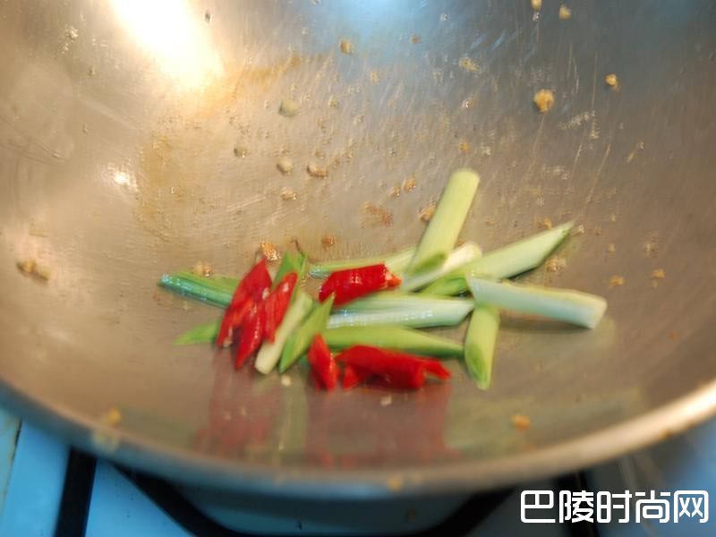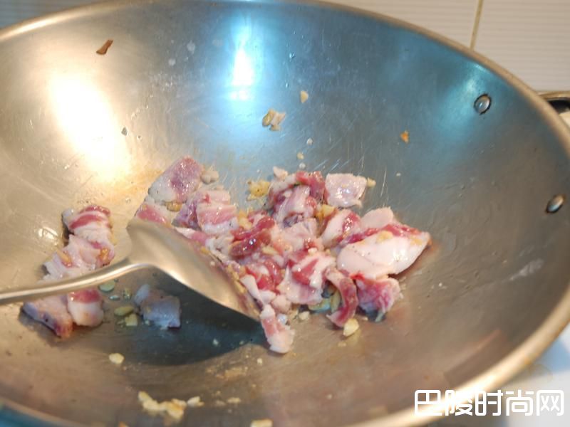 3捞出8分熟的肉爆香蒜苗后加入猪肉一起炒->蒜苗猪肉完成