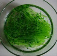 2.捞出沥干水分后放入凉开水里冷一下,这样小苗会很绿哦
