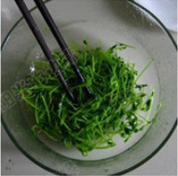 做法1.拣去豌豆苗中的杂质,清洗干净,沥干水。