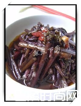 酸辣蕨菜蕨菜,醋,辣椒酱半汤勺,鲍鱼汁,生抽1汤勺,鲍汁1汤勺,半醋1汤勺,盐,糖,蒜片