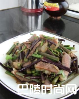 蕨菜炒腊肉腊肉、蕨菜、青椒、红椒、蒜苗、豆瓣酱、食用油、白糖、味精、盐