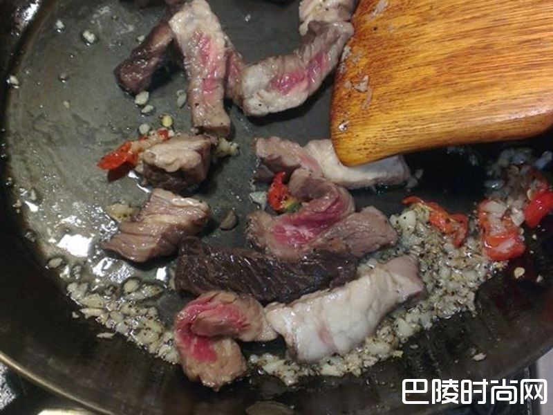 4再加入牛肉快速拌炒即可关火,再拌入青菜即可