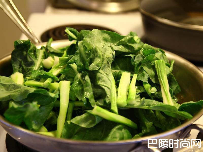 5.倒进沥干水分的芥蓝,爆炒1分钟