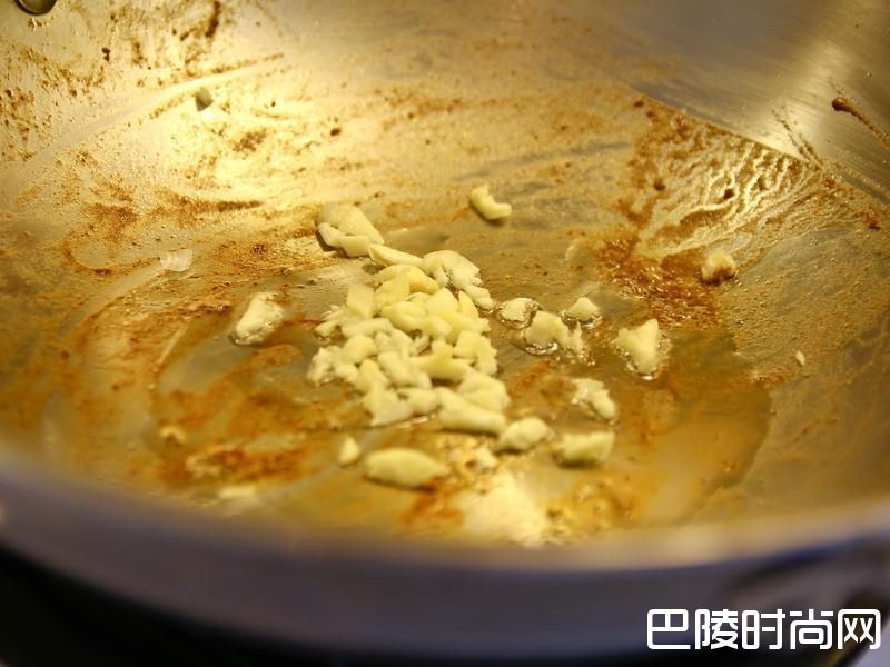 5蒜出香味后加入芥蓝,炒至芥蓝熟。