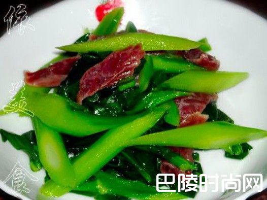 腊肠炒芥蓝腊肠2根,芥蓝500克,生姜几片,白酒5ml,白糖3ml,盐适量