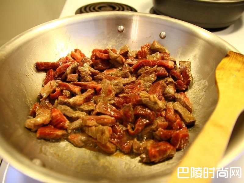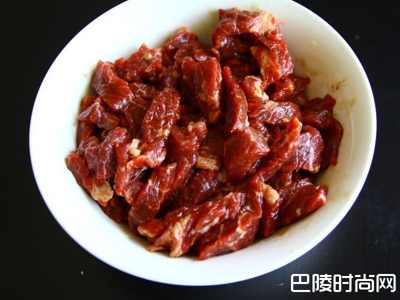 1牛肉切条状,用酱油、蠔油、糖与松饼粉醃至少30分钟。