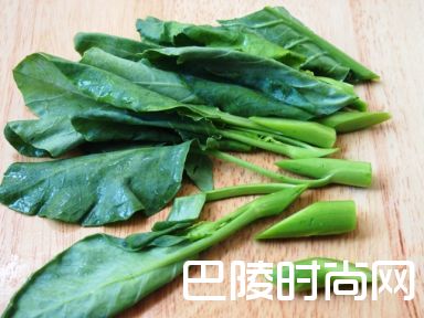 1芥兰洗净,将叶子和茎分开(如图所示)
