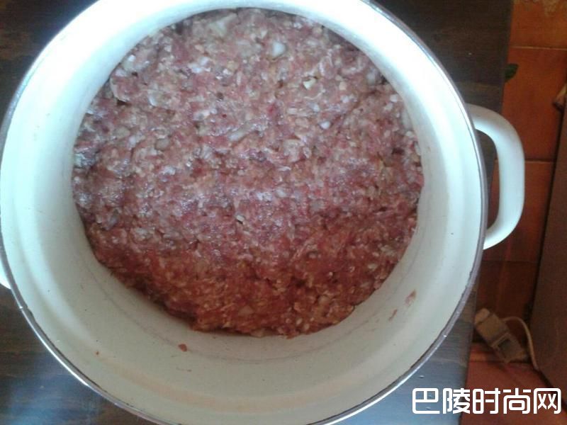 2准备里面的肉馅,把绞肉放在容器中,并且加入切碎的洋葱,米,麦粒,盐,胡椒,辣椒粉及1杯水,用手充分地揉拌,至少要马杀鸡3分钟。拌好的肉馅,如图静置10分钟左右,让里面的米和麦粒充分吸收水分,味道会更好。