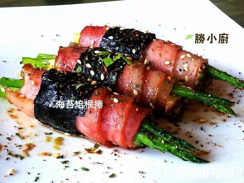 2芦笋灼熟,沥干;韭菜灼至软身,备用。