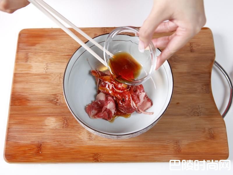 5爆香蒜蓉和洋葱粒,再加调味料炒匀煮成酱汁,淋在牛肉卷上后上碟。(食用时可多配搭一碟菜)