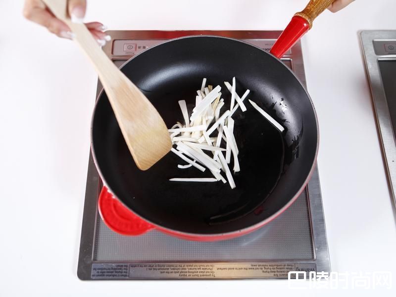 3烧红镬下葡萄籽油,略煎熟杏鲍菇,盛起备用。