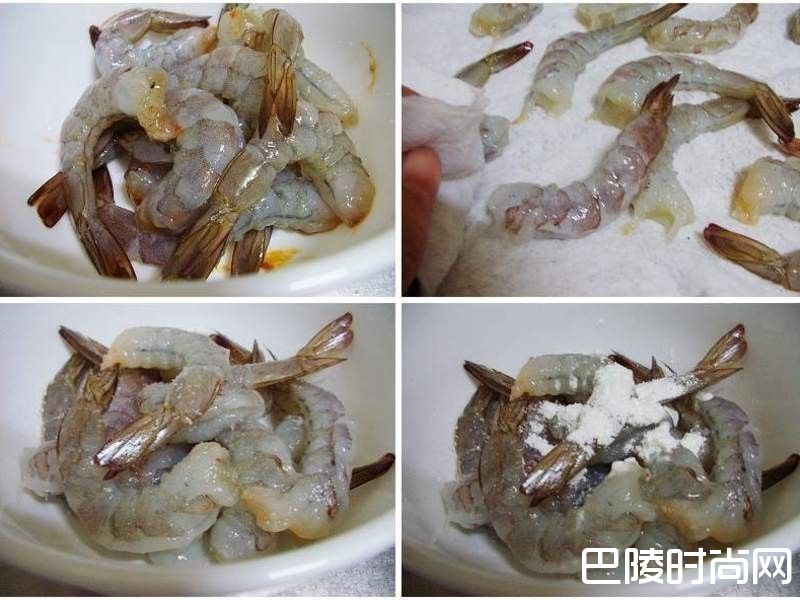 2虾子去壳留尾ˊ延著背部划开去肠泥ˊ确实擦干水份ˊ然后以醃料略为抓匀备用