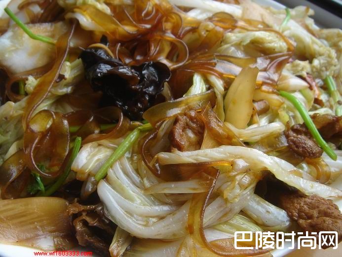 白菜炖粉条主料:白菜,肉片(用酱油腌渍),