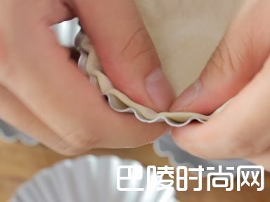 2烤箱200℃预热,将模子移入烤箱,烘烤7分钟左右,待饺子皮表面变得微微焦黄取出脱模呈花朵形碗状。
