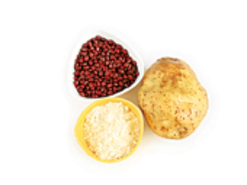 洗净,马铃薯去皮后切成小丁,放入容器内加1/2杯糖拌匀,进电锅蒸至熟而不软烂(外锅约放1/2碗水)。