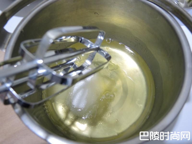2细砂糖分两次加入蛋白和柠檬汁用打蛋器打发泡 (蛋白必须是冰的)