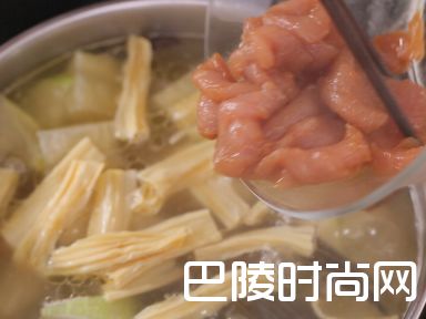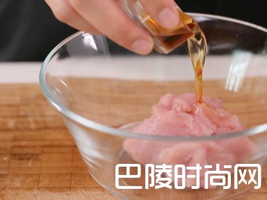 1瘦肉切片,加入绍兴酒、生抽、生粉及胡椒粉腌15分钟