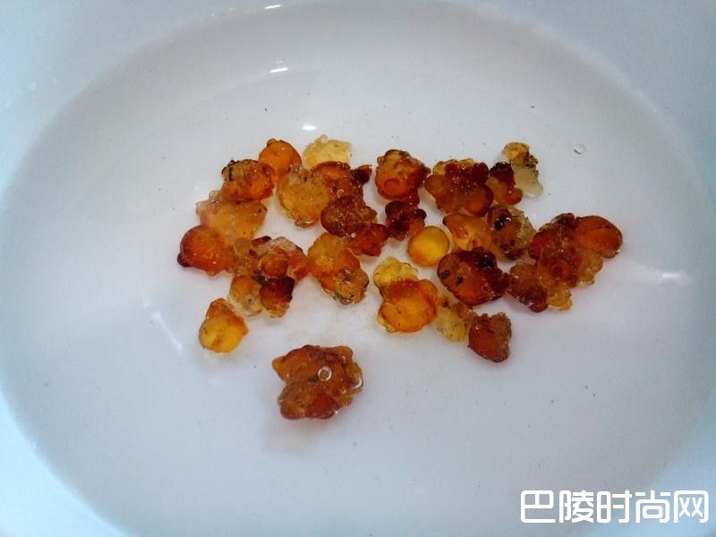 用牙签挑出杂质浸透24小时的桃胶非常容易挑出杂质