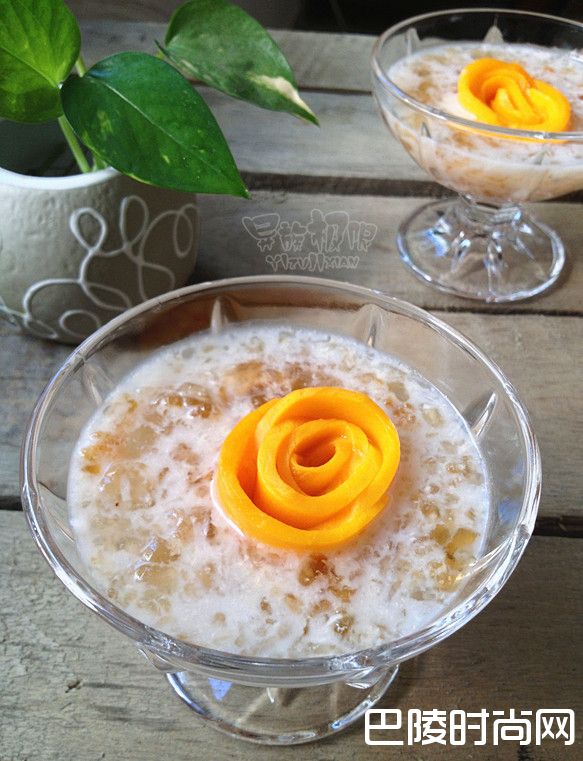 椰汁250ml,桃胶(又名桃油)30g,芒果50g
