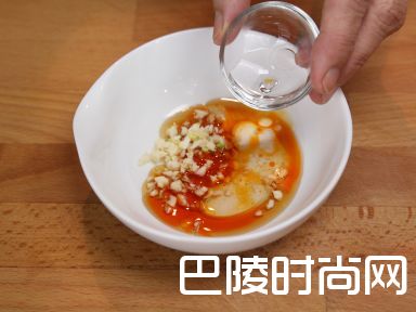 7蒜蓉、麻油、辣椒油和醋拌匀