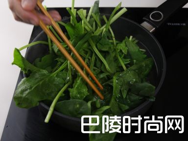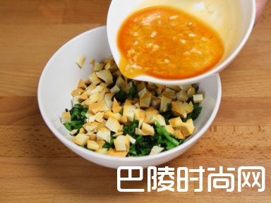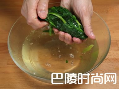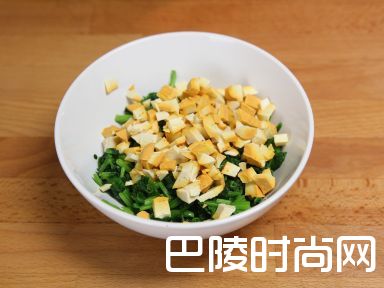 8把菠菜、豆干和芝麻混合,再加盐、蒜蓉、麻油、辣椒油和醋拌匀