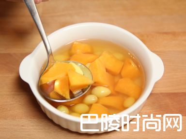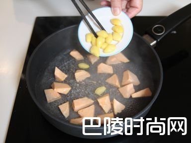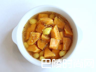 2煮滚一锅水,加入番薯和白果煮8分钟